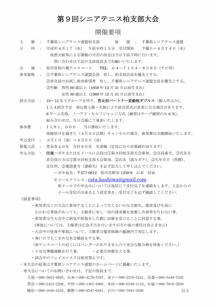 千 葉 県 シ ニ ア テ ニ ス 連 盟