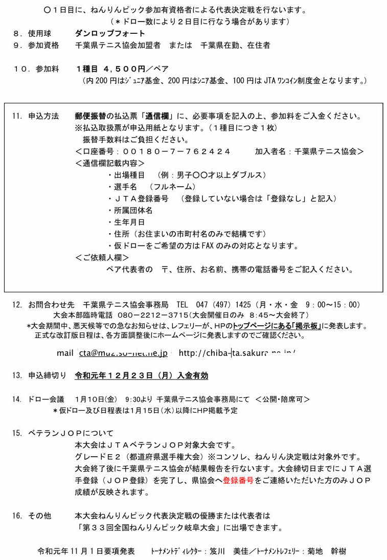 千 葉 県 シ ニ ア テ ニ ス 連 盟 Proudly powered by WordPress